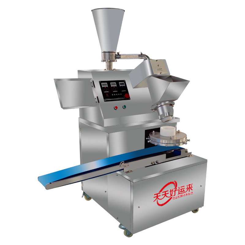 多功能包子機采用螺旋式推面方式,由模具控制面皮的厚薄。面斗中的面由供面調(diào)系統(tǒng),將面送至機頭出口處,形成含餡的面柱后由成型盤內(nèi)的成型塊將面柱擠斷成大小均勻的包子。全機的工作部分主要由:送面系統(tǒng)、送餡系統(tǒng)、機頭、成型盤、輸送帶五部分組成。工作流程:供餡料斗-〉供面斗)-〉加餡加面-〉切斷成型-〉傳送帶-〉醒發(fā)-〉蒸制;優(yōu)勢:采用雙絞龍,螺旋揉面推進出面,大螺徑,緩慢勻速出面,面皮受力小,供面速度可調(diào)。餡管采用半臥式或立式餡斗裝置,立式有利于改大顆粒餡料的流通,在制作較稀餡料時可采用半臥式餡斗下均勻。 可加配值可生產(chǎn):餡餅和方型饅頭、圓饅頭等。成型盤采用軸承傳送,配合刀塊張合防止以前包子機做大包子成型堵面現(xiàn)象。有9褶或12褶和16褶花型供用戶選擇,進口高分子材料刀塊利用科學原理均衡受力減小,解決了其它包子機成型刀塊靠一塊主刀推動其它副刀運動易磨損,刀夾面粘面,易受天氣變化而熱脹冷縮不能正常生產(chǎn)的難題,促進機器穩(wěn)定延長使用壽命。免費培訓包子制作技術(shù)、及速凍生胚技術(shù);