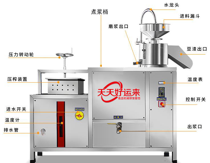 我公司生產(chǎn)即食豆?jié){、豆腐機在國內(nèi)是較早的企業(yè),多年來通過對設(shè)備的不斷改進(jìn),利用現(xiàn)代科技與傳統(tǒng)工藝的完美結(jié)合。使設(shè)備外觀設(shè)計美觀、時尚,操作簡單,主要有磨漿機、煮漿桶、蒸氣機、成型機等組成。機器采用不銹鋼制造,干凈衛(wèi)生,技術(shù)領(lǐng)先,質(zhì)量可靠,經(jīng)久耐用。實現(xiàn)了生產(chǎn)過程自動化,具有高效、省時、耗能低、占地小、無污染等優(yōu)點。而且采用先進(jìn)磨漿技術(shù),瞬間加熱工藝,保證了蛋白質(zhì)不受破壞,從而使生產(chǎn)出來的豆制品營養(yǎng)更豐富,味道更鮮美。工藝流程: 將浸泡好的黃豆由高速分離磨漿機加工,排出豆渣,產(chǎn)出的豆?jié){經(jīng)過蒸汽加熱達(dá)到去腥,并煮漿均質(zhì),并添加輔助原料消泡、凝固劑(如鹵水、石膏、內(nèi)脂、酸漿等)、成型和深加工處理便可產(chǎn)生出營養(yǎng)豐富的豆制品如:豆?jié){、豆腐腦、豆腐、豆桿、豆皮、素雞、豆泡等制品,適用于賓館、超市、飯店、學(xué)校、企業(yè)食堂、工程店及食品廠等。